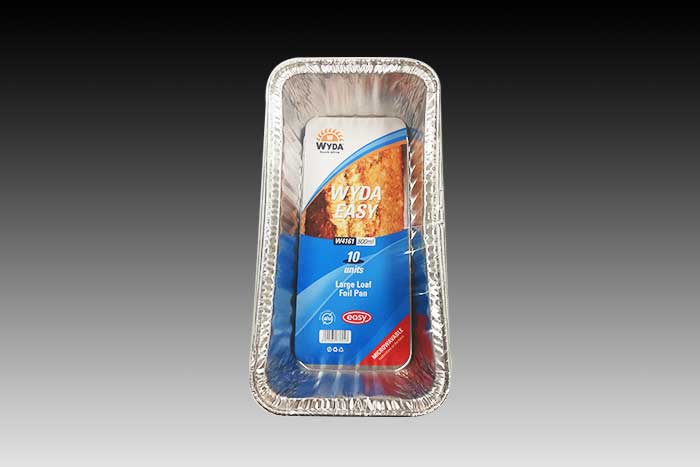 Retail pack of the large aluminium foil loaf pan (Meat-Loaf) with 800ml capacity. This pack comes with 10 foil pans and a full colour pamphlet with barcode. With a dimension of 220L x 113W x 50H it is great to stack and store.