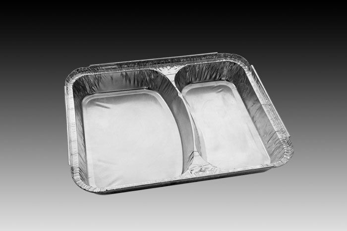 Two division, medium sized aluminium foil container with 470 ml + 320 ml capacity. The W2DIV is a heavy-duty container which comes with an optional board lid. It is perfect for industrial or school kitchens. The division keeps the meat separate from the vegetables or starch, or salad.